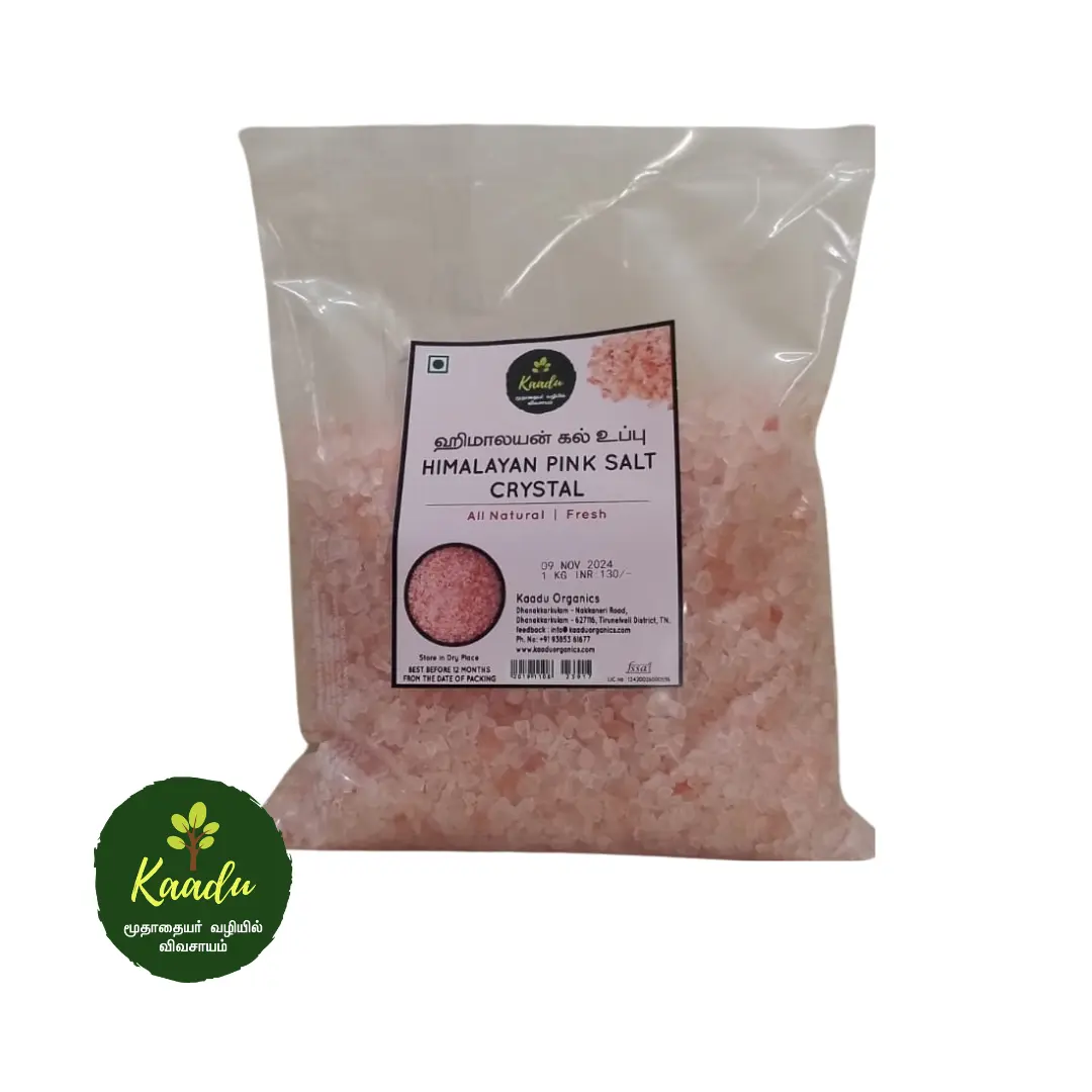 Discover the pure taste of Natural Himalayan Pink Salt from Kaadu Organics. Sourced directly from the ancient salt mines in the foothills of the Himalayas, this salt is as pristine as nature intended. Our Himalayan Pink Salt is rich in essential minerals, including calcium, magnesium, and potassium, which give it the signature rosy hue and a wealth of health benefits.
