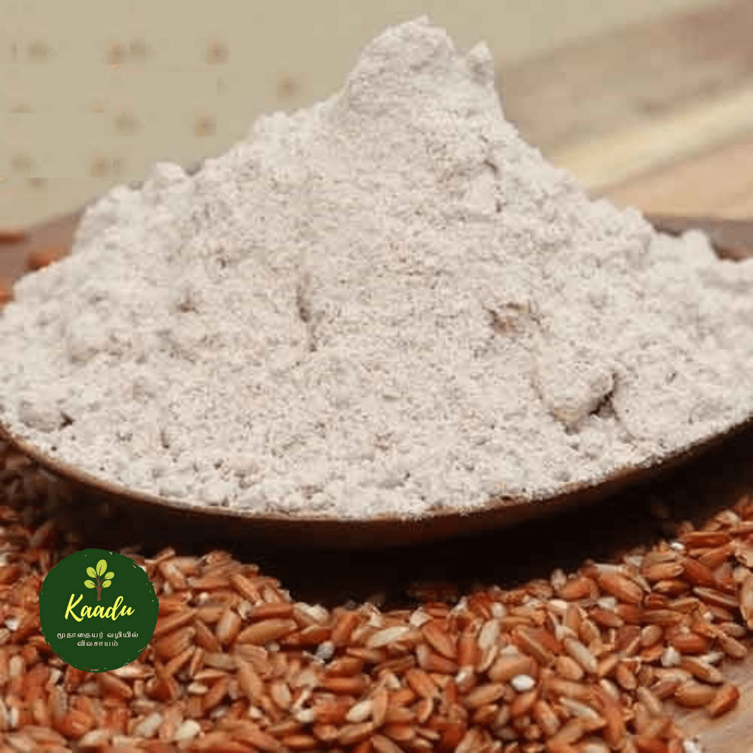 In order to prepare red rice puttu flour, roast and grind the red rice grains coarsely. This results in flour with a high nutritional content and a pleasant aroma. It contains several anthocyanins, including flavonoid antioxidants like quercetin, myricetin, and aparendin.